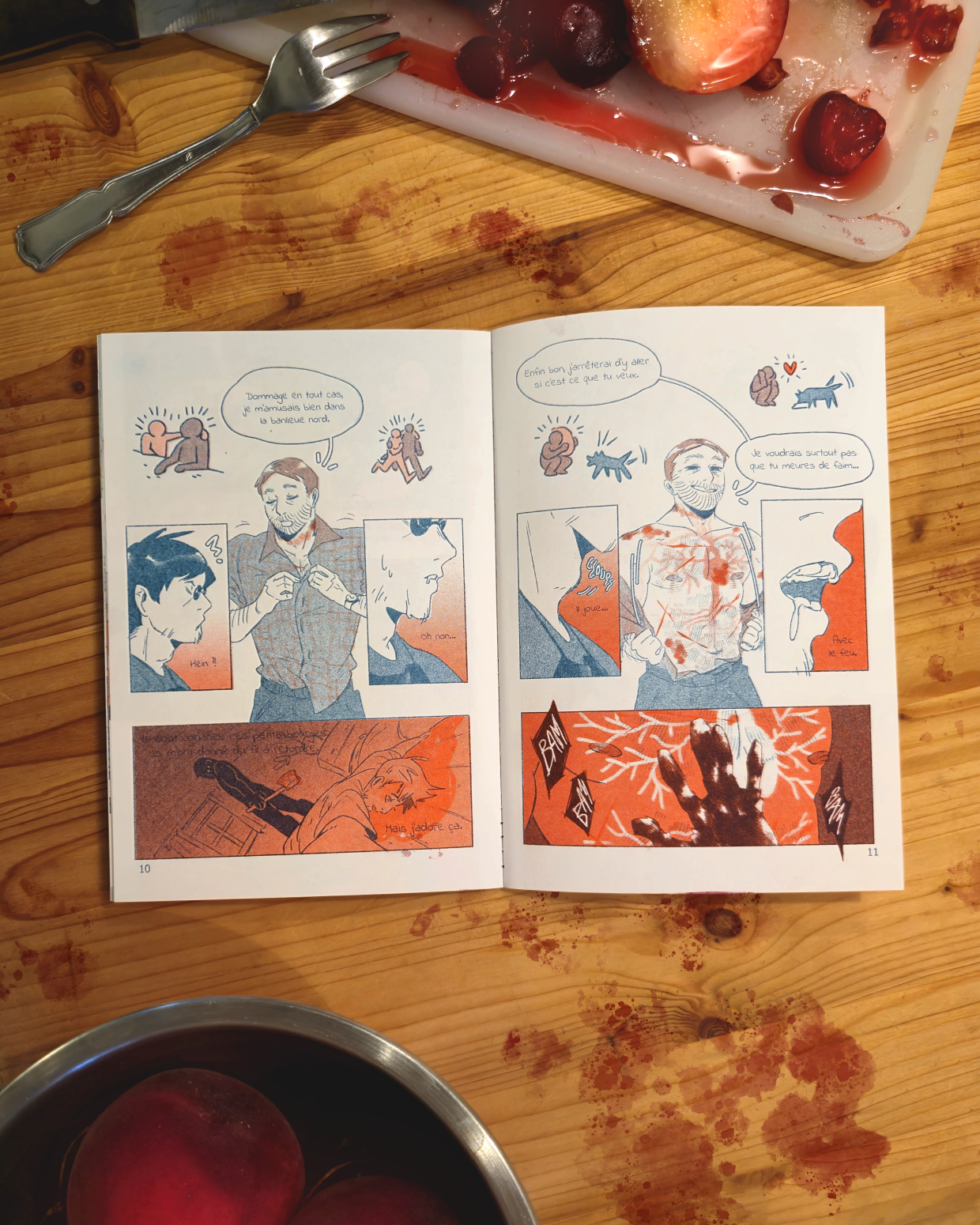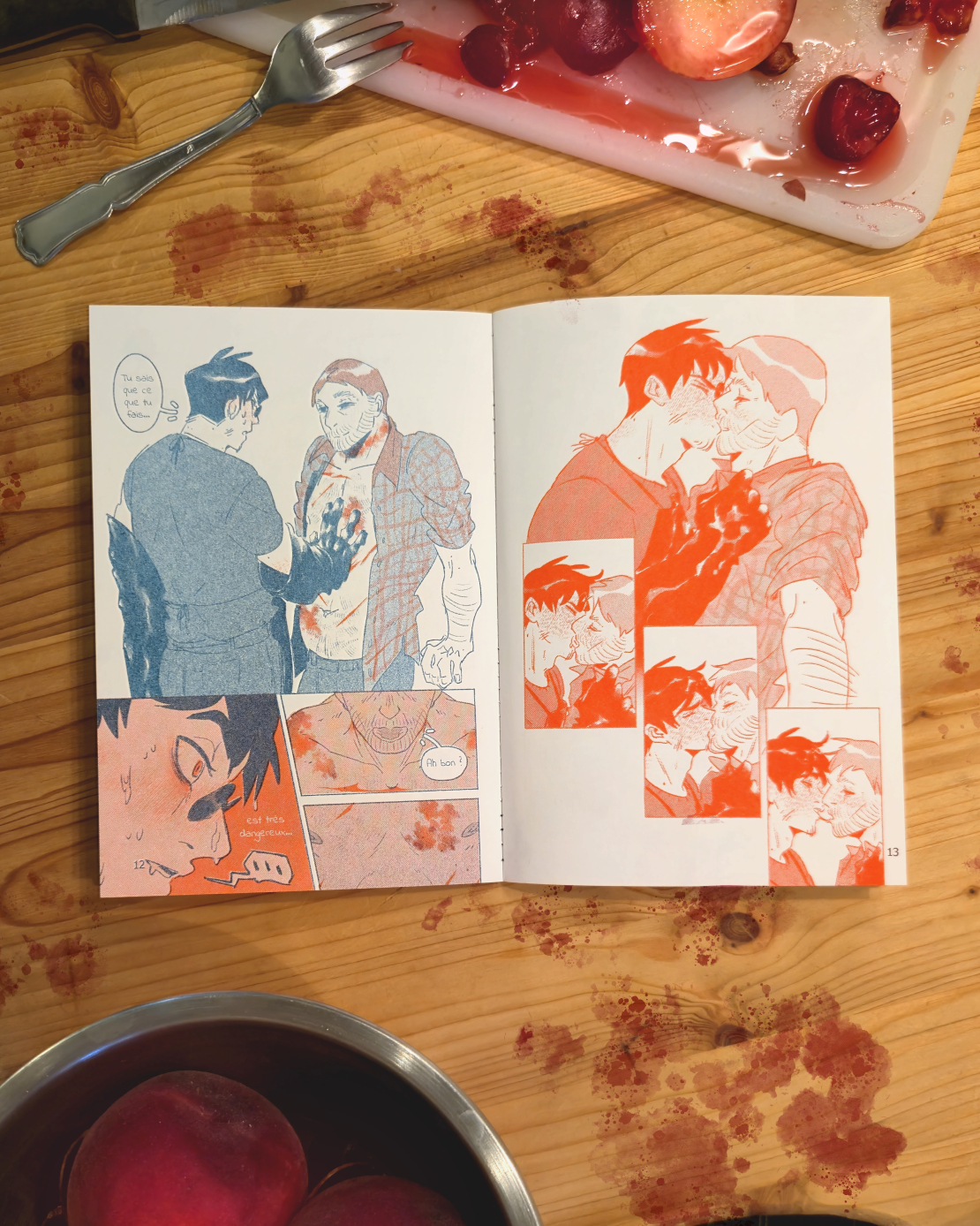 Impression : Atelier Rond Bleu. Encres : Teal et Rouge. Format : A5 - 32 pages. Public : R18 - Adulte uniquement.
