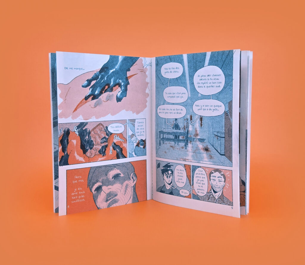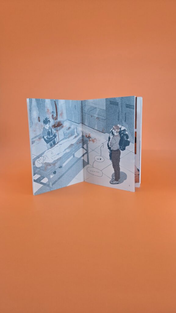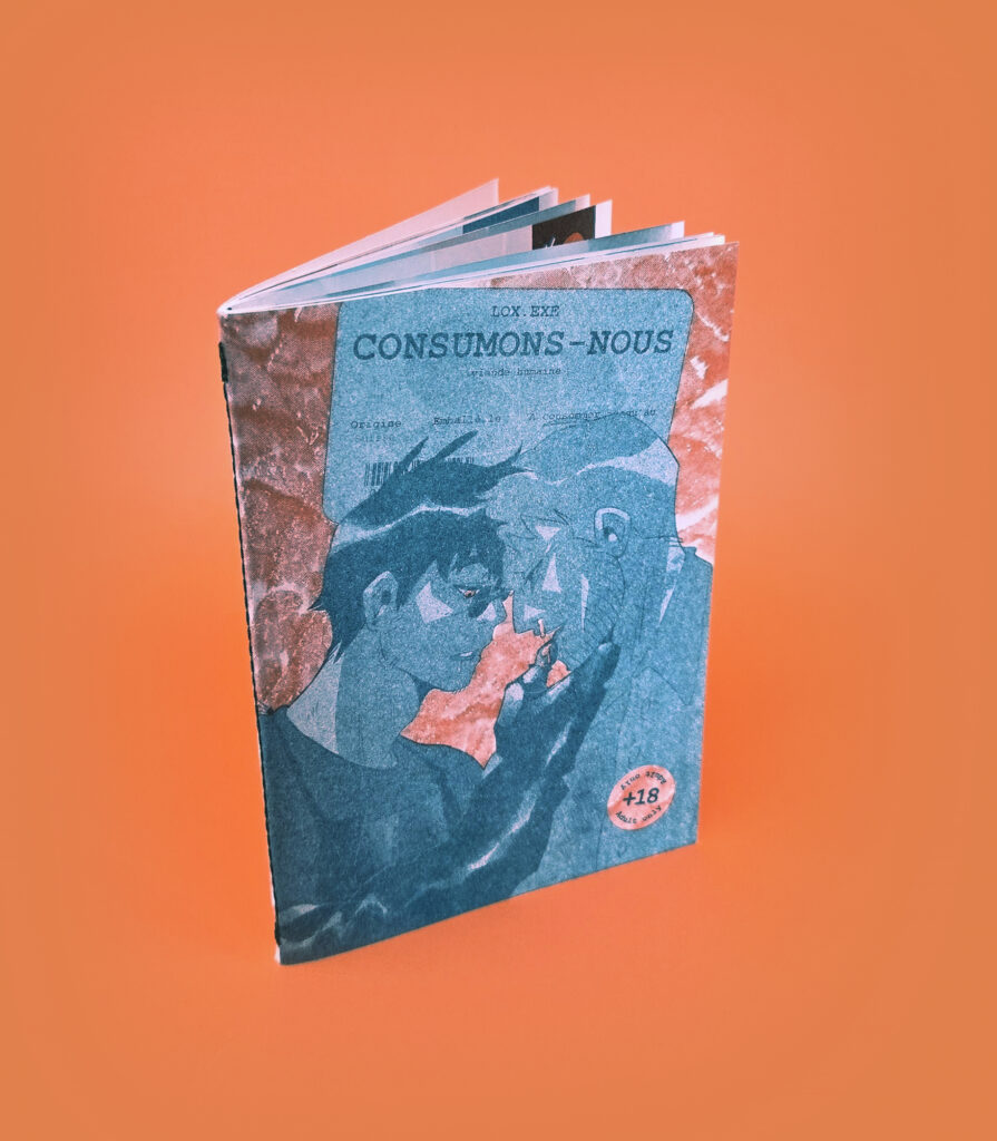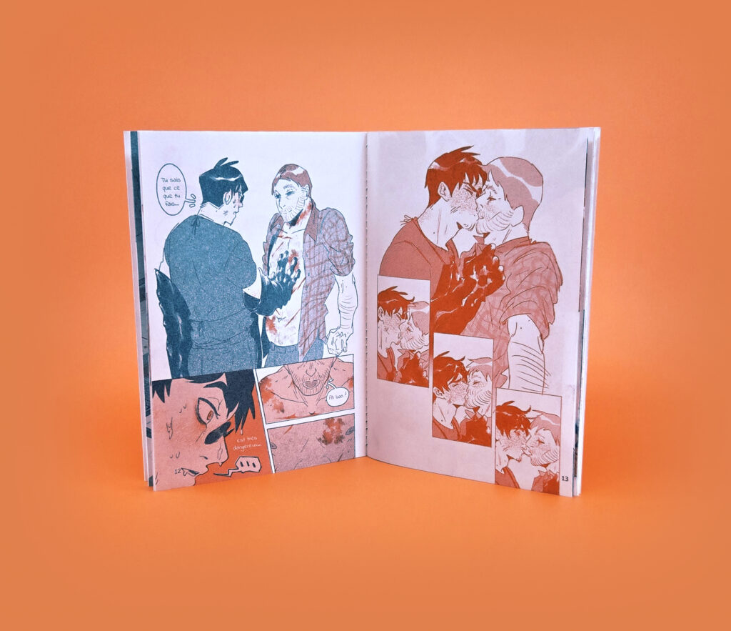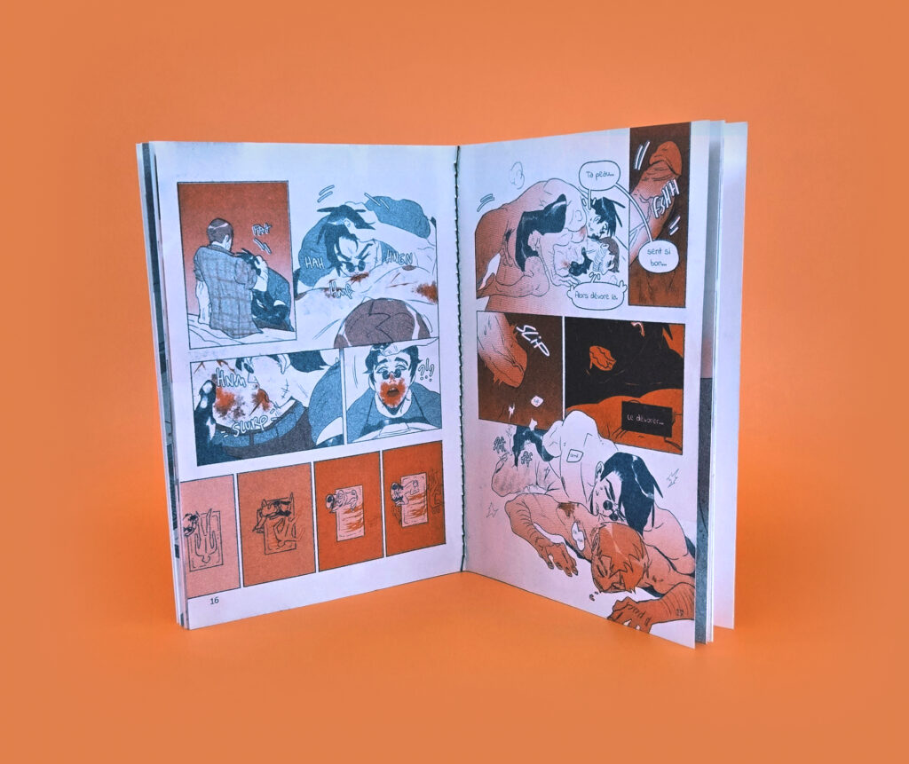 C’est un projet riso de 32 pages qui explore les thématiques du cake-verse, un sous-genre un peu trash de l’omegaverse. Ou les « Fork » des gens ayant totalement perdu le sens du goût et les « Cake » des gens dont la chair possède un goût unique pour ces premier, vive en cohabitation… du moins essai.